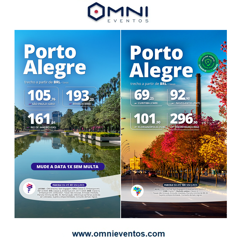 Foz do Iguaçu, Florianópolis e Porto Alegre a partir de R$: 69,25 por pessoa